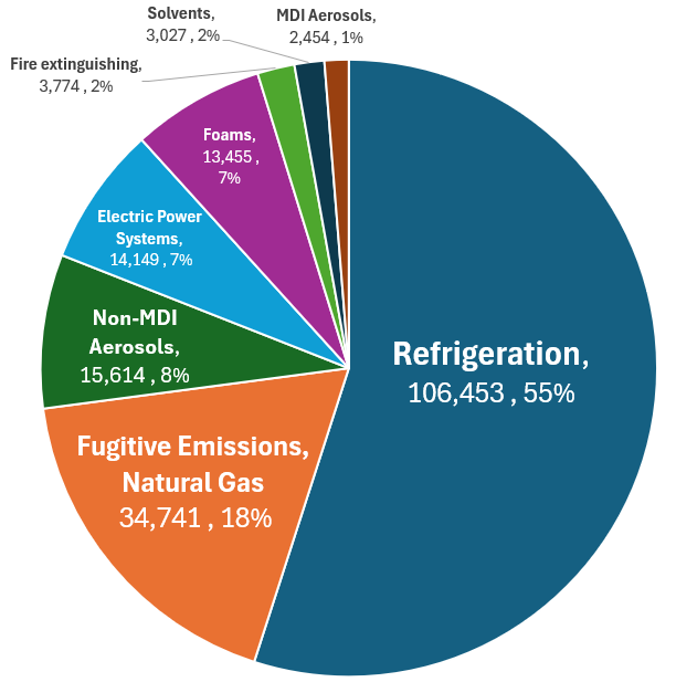 There are two primary sources of Fugitive emissions. First, the natural gas production and distribution system leaks methane, a potent greenhouse gas. Second, fluorinated gases escape from industrial applications including refrigeration and air conditioning equipment, solvent cleaning, foam production, sterilization, fire extinguishing, and aerosols. These gases include hydrofluorocarbons (HFCs) and perfluorocarbons (PFCs). Sulfur hexafluoride (SF6) is another fluorinated gas that utilities use in electric power systems for voltage electrical insulation, current interruption, and other uses in the transmission and distribution of electricity. It is the most potent greenhouse gas known to-date; over a 100-year period, SF6 is 24,300 times more effective at trapping infrared radiation than an equivalent amount of CO2.
