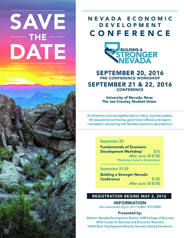 The University of Nevada at Reno – College of Business, University of Nevada Las Vegas – Center for Business & Economic Research, Western Nevada Development District, Nevada Industry of Excellence and USDA Rural Nevada are collaborating to present the 2nd Annual Nevada Economic Development Conference.