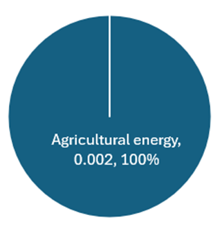 The AFOLU sector causes 0.002 MMT of CO2e, less than 1% of emissions in Washoe County. Of the “Required” emissions categories in the USCP Inventory standard, 100% of the emissions come from electricity that powers agricultural businesses.